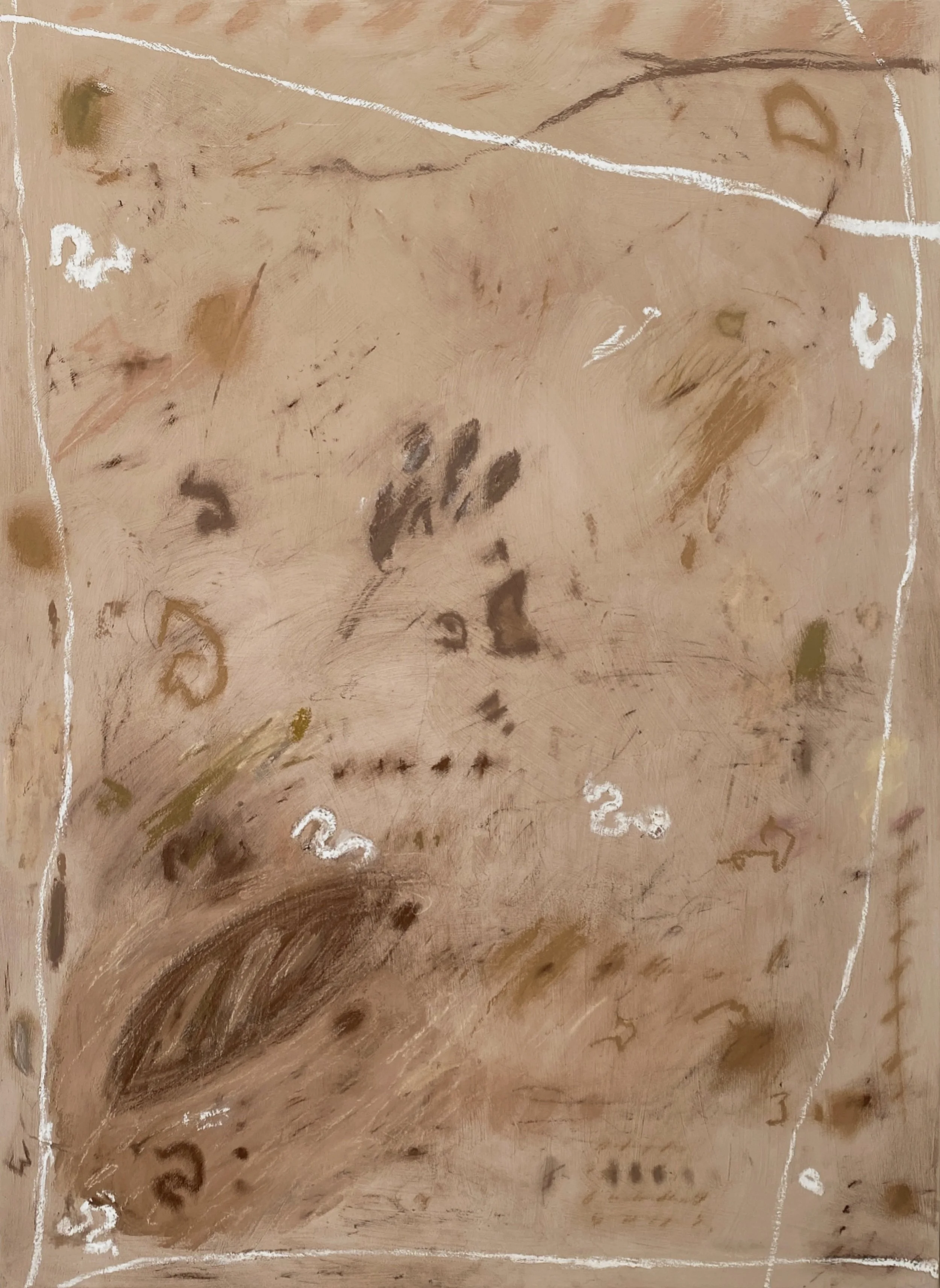 HA: Plaster is my favorite medium to add textures to my paintings, it also allows me to create an organic color field that is raw and non-homogenous, which resembles natural decay and shows the passage of time. Pastel is another favorite medium of mine because I can modify the marks after with my fingers, and this gives the art making process a special tactile quality that is more intimate and child-like.