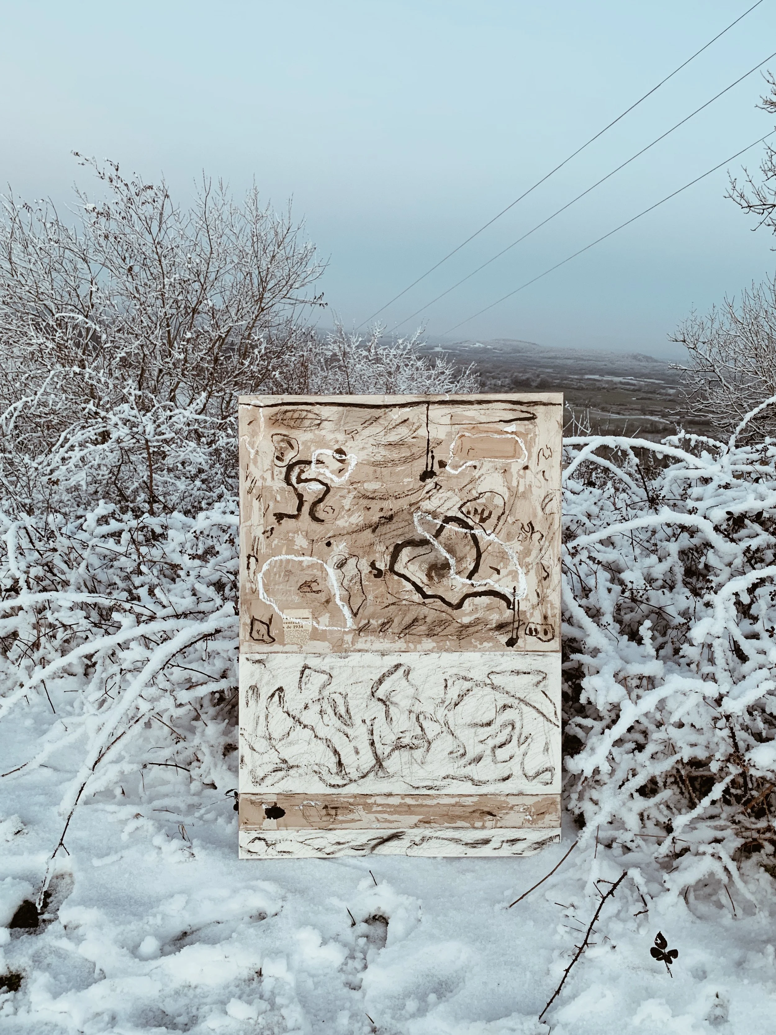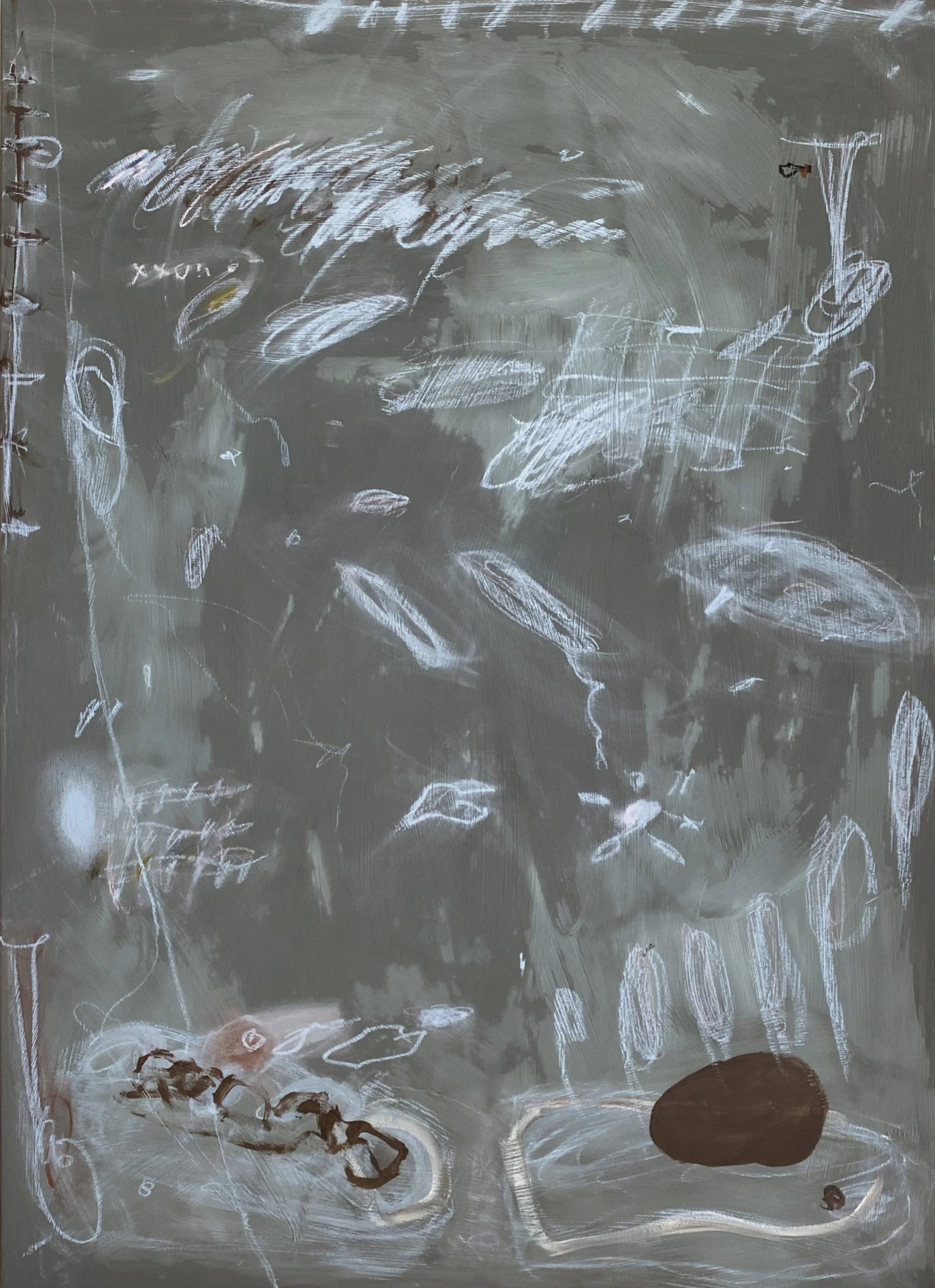 The innocence of a child’s scribbles or cave paintings also fascinate me because of the poetry in their carelessness, the freedom in their honesty – and because this is also where all of us find a common ground: we all came from cavemen and we all had been a child. All of these influences translate on to my creative process, from mimicking the textures of old stone walls to the spontaneous mark making and nonchalant brush strokes. Each work is a meditation on time, chance and accidents.